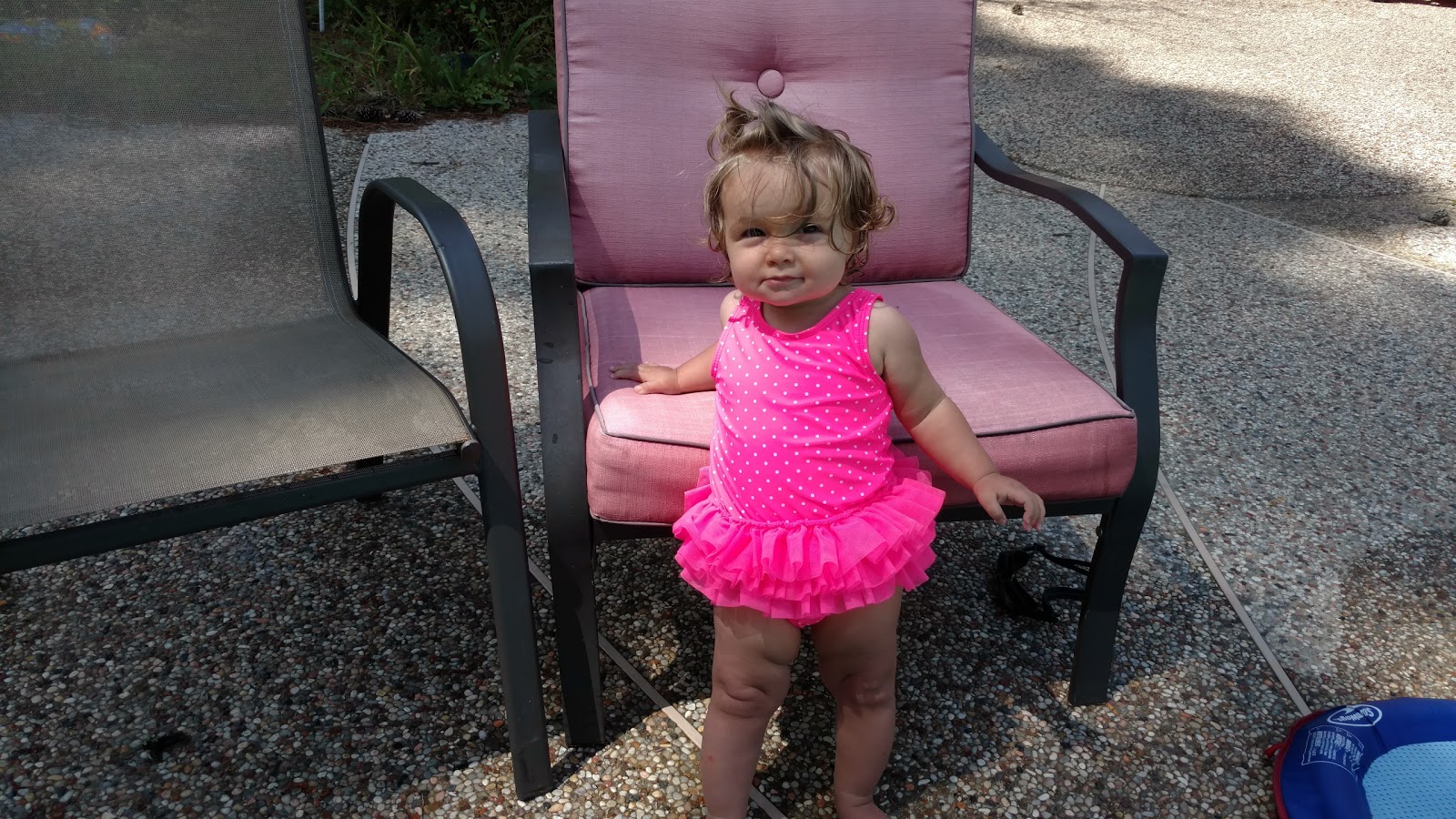 Brinley could spend all day in the pool. Yesterday I thought I'd let her stay out as long as she wanted and see how long she could go. The chlorine in her eyes is what did her in I think. (Thanks Grandma Martinson for the rings!)