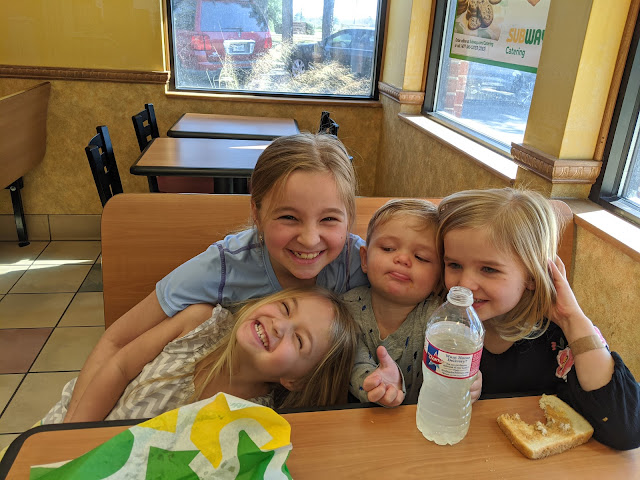 Brinley begged and begged to go to her friend's birthday party at a trampoline park, but we told her probably not because it was Derek and I's date night (which is our #1 event for the week). Our babysitters last minute cancelled on us and so she was able to go- boy was she excited! She is definitely our ms. social girl!