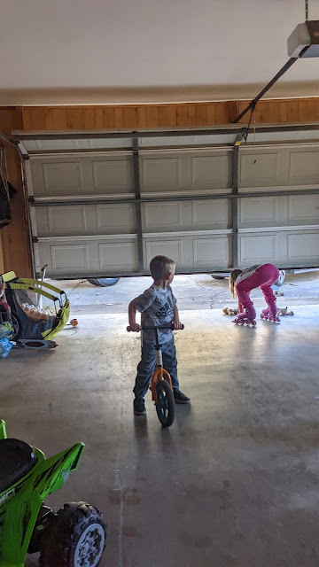 Because the skating rink was closed, the girls created their own in the garage. I was so impressed with their creativity and doing it in the cold weather. They had a blast!